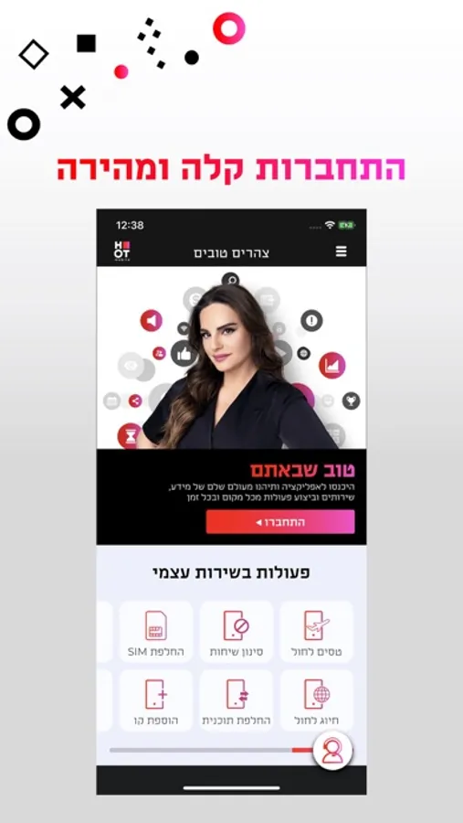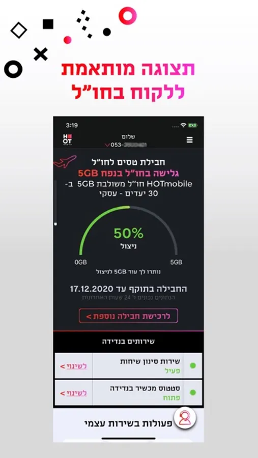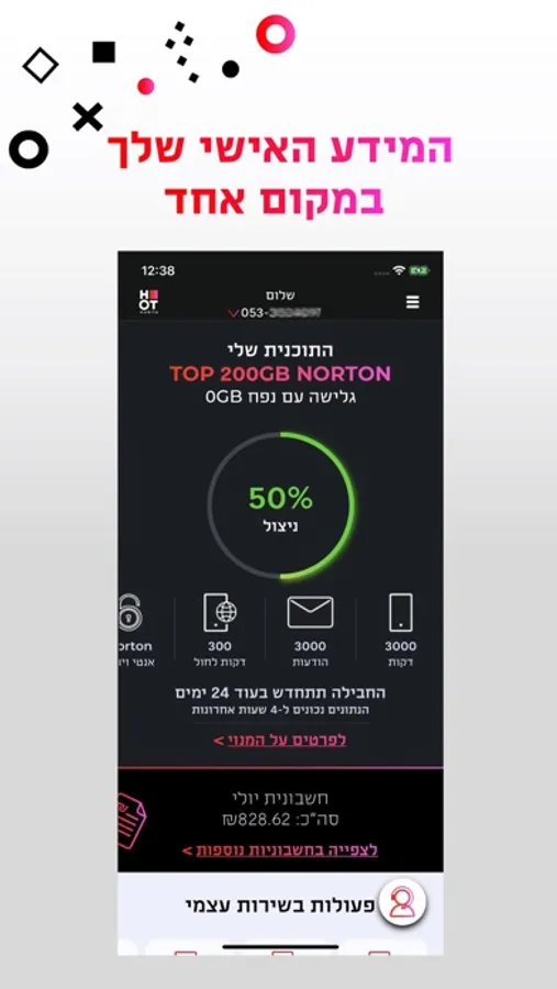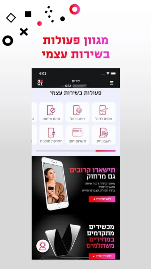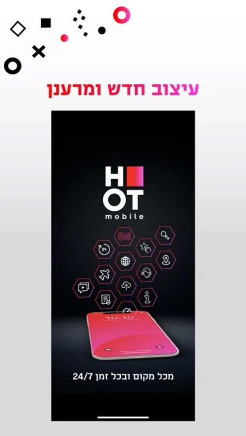 אפליקצית my HOT mobile מאפשרת לך לקבל מידע אישי 24/7 ולבצע מגוון פעולות בשירות עצמי