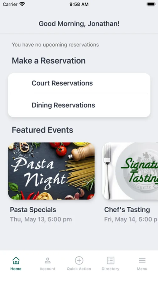 - Make dining and court reservations