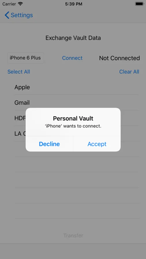 Use the Exchange Data functionality to connect to other devices running Personal Vault to transfer vault data between devices. This is the only way you can copy vault items from one device to another!