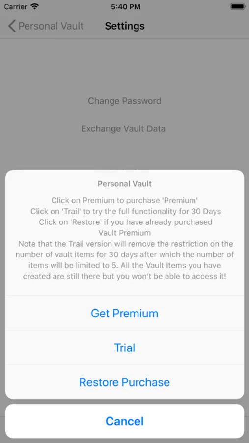 Vault Data is protected using Apple's full data protection. Data only remains on the device and is not backed to the cloud.