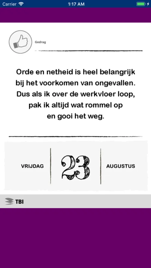 Verder kunnen alle TBI gebruikers in de app de TBI veiligheidsrichtlijn, het laatste nieuws, de ‘leren van kaarten’ en de toolboxen doorlezen, en inspecties uitvoeren.