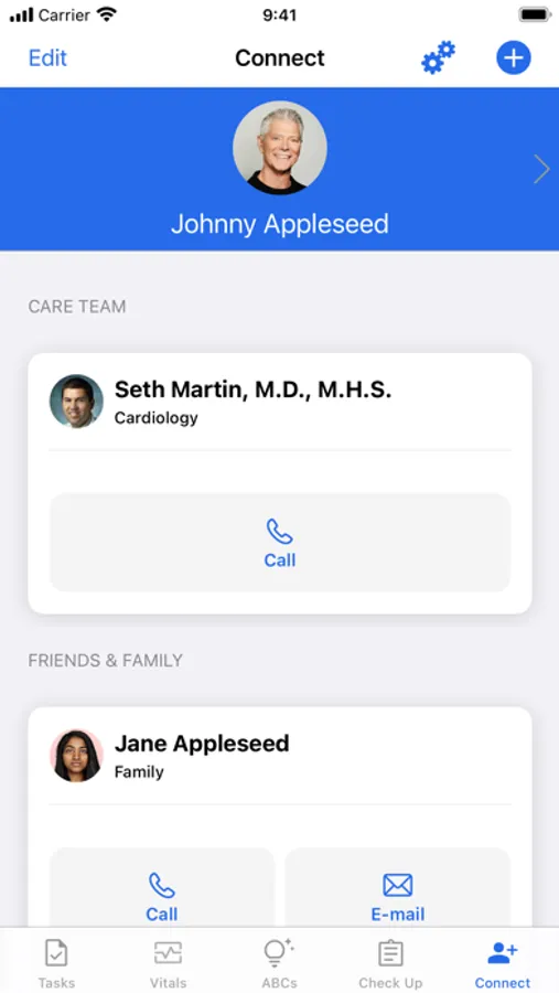 5. Connect: keep critical health information a click away, including medical cards (e.g. stent cards, insurance cards) and care team contact information.
