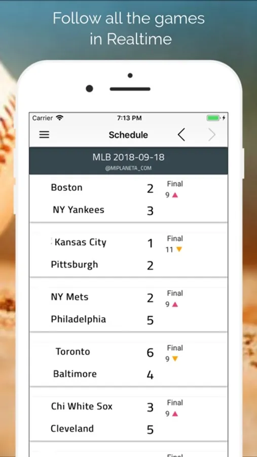 Follow all the action of the MLB, select your favorite team and receive push alerts on every game, scores, and more.