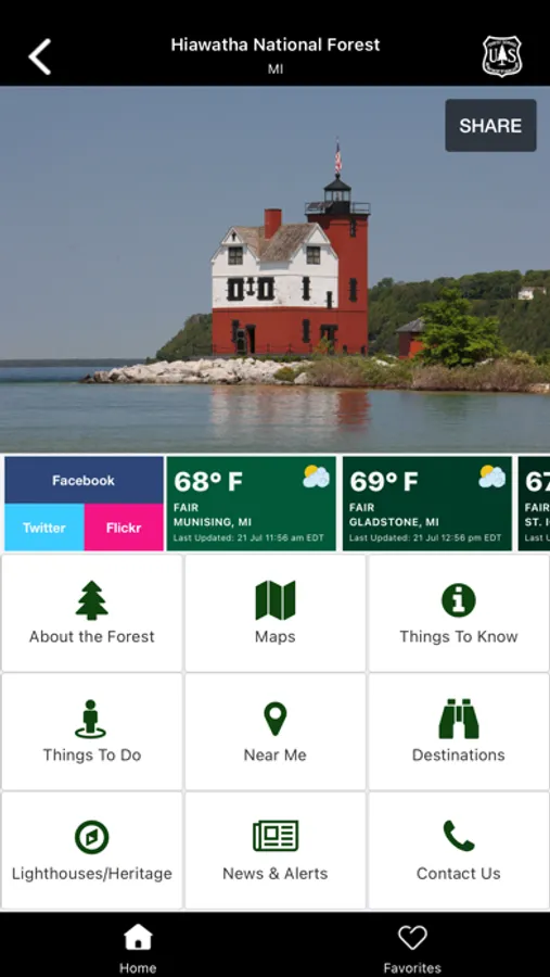 The official Eastern Region National Forest app provides essential information about the National Forests from Minnesota to Maine, and from Missouri to West Virginia. This app includes information on recreational activities and sites, trail permit information, alerts, maps, news, events, directions and contact information. Plan and prepare your visit to the Forest with the many great tools and features such as “Things to Know”, “Things to See”, “Things to Do” and “Near Me”.