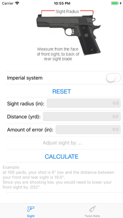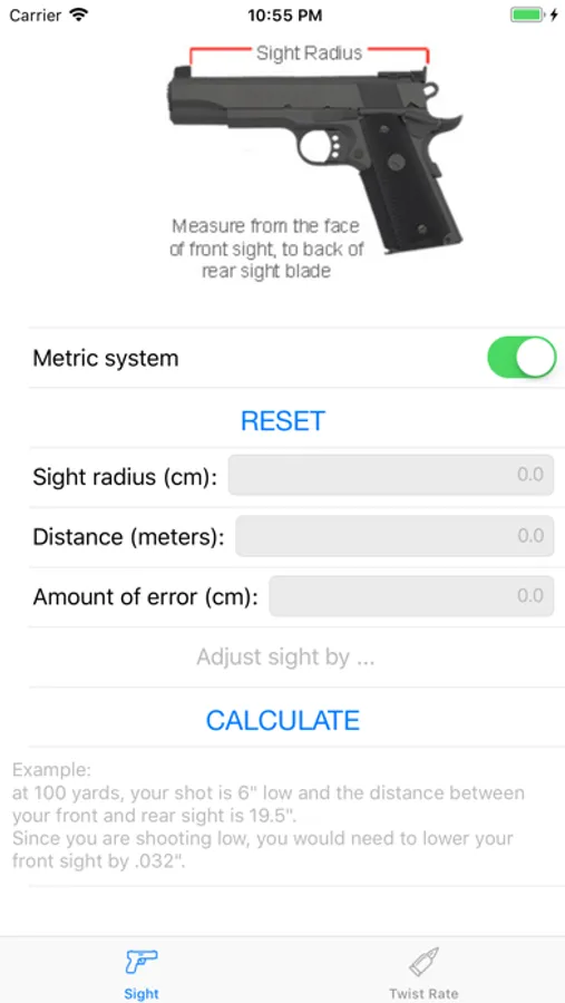 App will help you to adjust iron sight and determine optimal ammunition or twist rate which perfectly suits your gun.