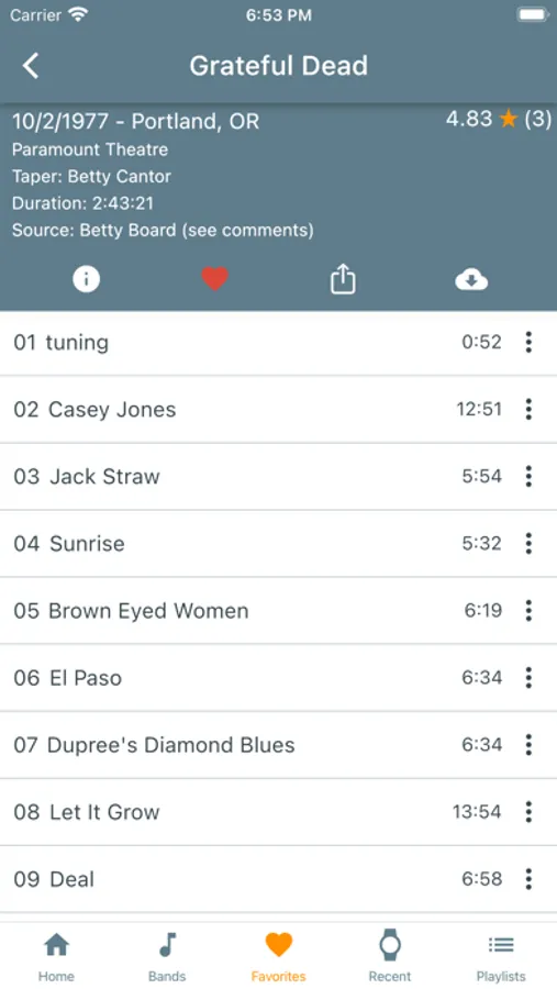 Taper's Section gives you access to the Live Music Archive from archive.org in the palm of your hand.