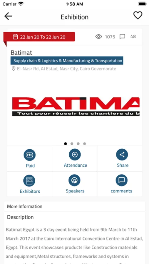 It keeps app users up to date with all information about all international exhibitions in Egypt
