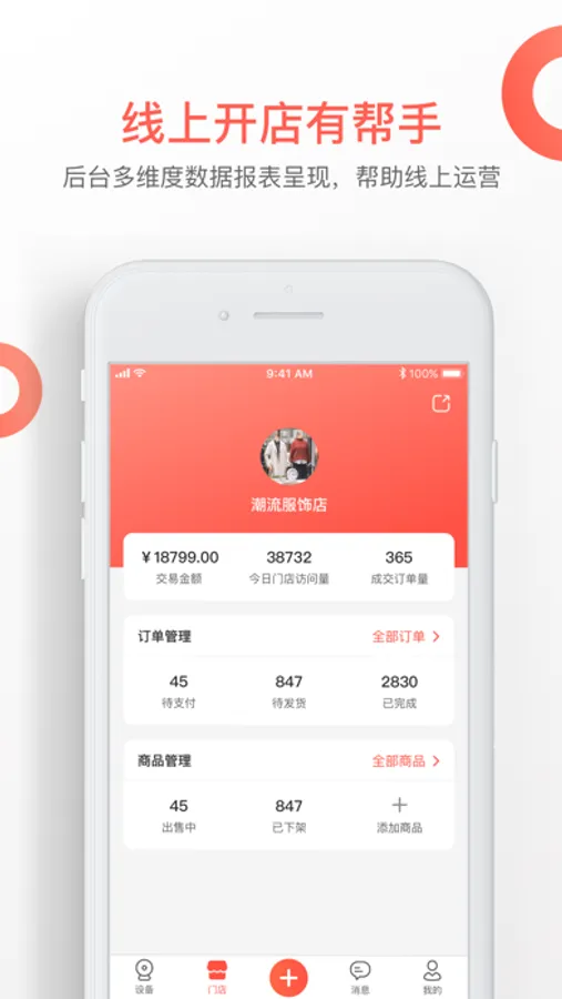 可以查看交易记录、物流详情、客户访问信息、物品消耗情况等数据报表,为店铺管理提供帮助。
