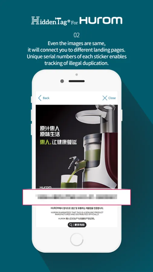 HiddenTag for HUROM is the mobile app used to verify the authenticity of HUROM products