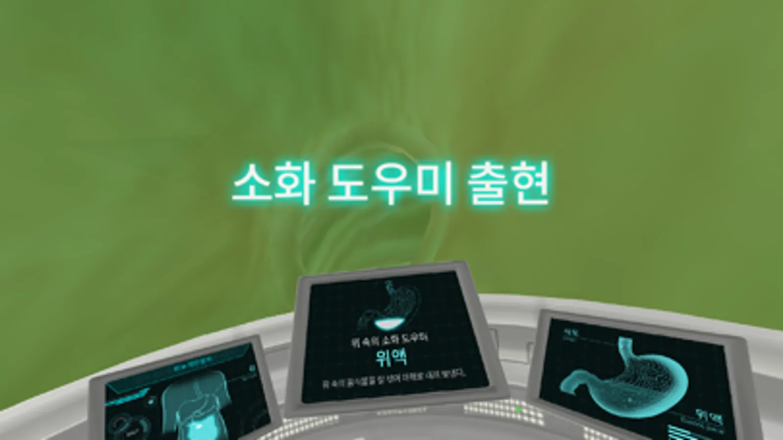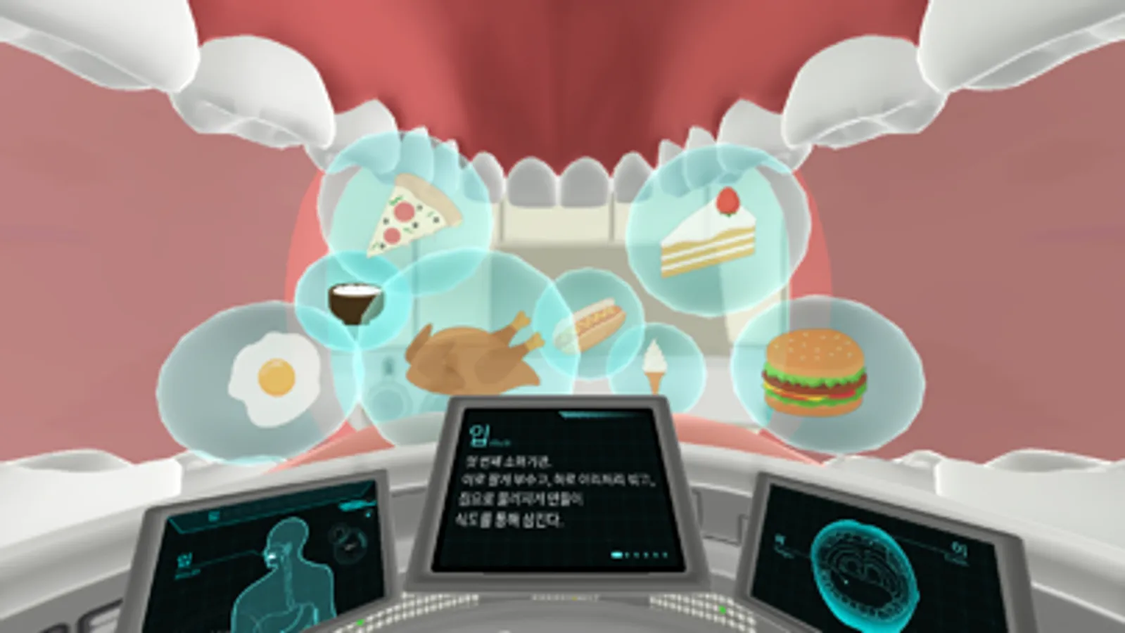 '꿀렁꿀렁 뱃속 탐험'은 초등 5학년 과학의 '우리 몸의 구조와 기능' 중, 소화기관의 기능을 학습할 수 있는 VR콘텐츠입니다.