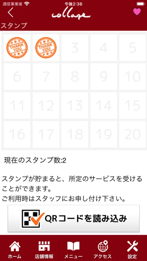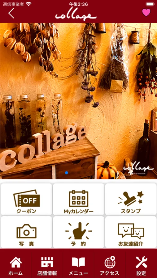 二戸市 美容室 コラージュ の公式アプリです! 貴女のヘアーライフにフレンチジャズを聴きながら心地よいひとときを、、、。店舗デザインはナチュラル指向でホッとくつろげる美容室です。ヨーロッパから輸入した古材でフロアーを作り、壁は職人に漆喰を塗ってもらいました。コンセプトは『ちょっと古い味のある欧州の品をさりげなく日常に使う素敵な生活!』エクステンションや着付けも行っているので、年代問わずに気軽に足を運んでください 美容室 collage【コラージュ】は、二戸市にあるナチュラル指向でホッとくつろげる美容室です。 二戸市 美容室 コラージュ の公式アプリでは、このような事ができるアプリです! ●スタンプを集めて、商品やサービスなどに交換する事ができます。●発行している、クーポンをアプリから利用する事ができます。●お店のメニューを確認できます!●お店の外観や内観の写真も閲覧できます。