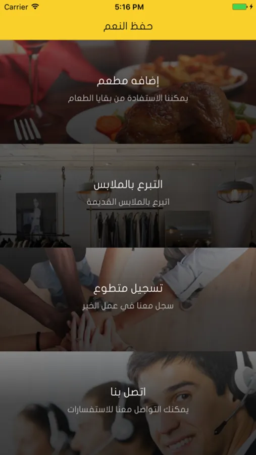 تطبيق حفظ النعم للتبرع بوجبات المطاعم الفائضة للمحتاجين وكذلك الملابس