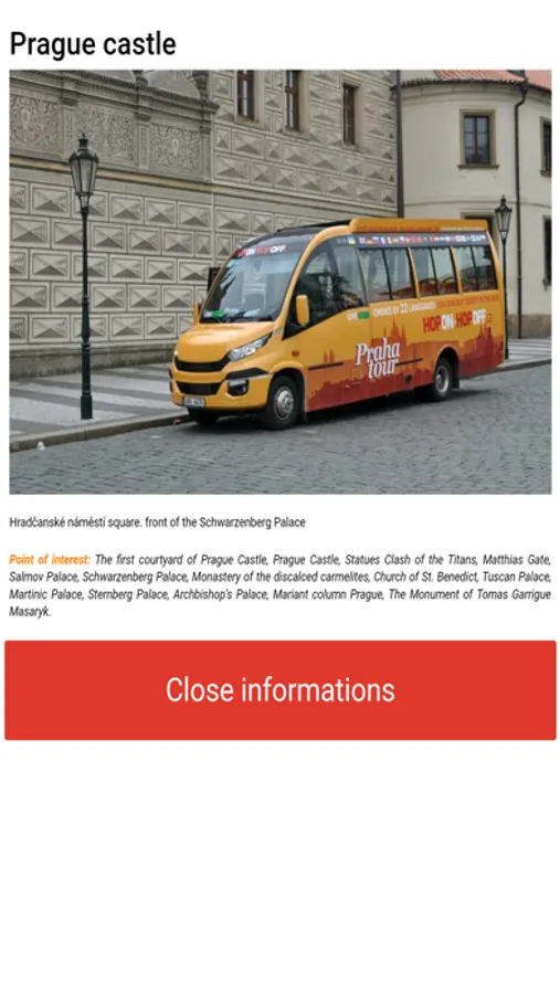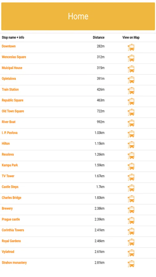 You never miss any Hopon Hopoff bus stop in Prague with this Application. It can show you the nearest stop an give you detailed description, how to get there.
