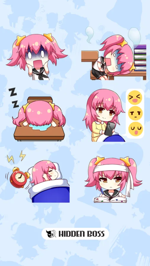 Sticker set created by Hidden Boss. Hibiki & Boss having the school time with you!