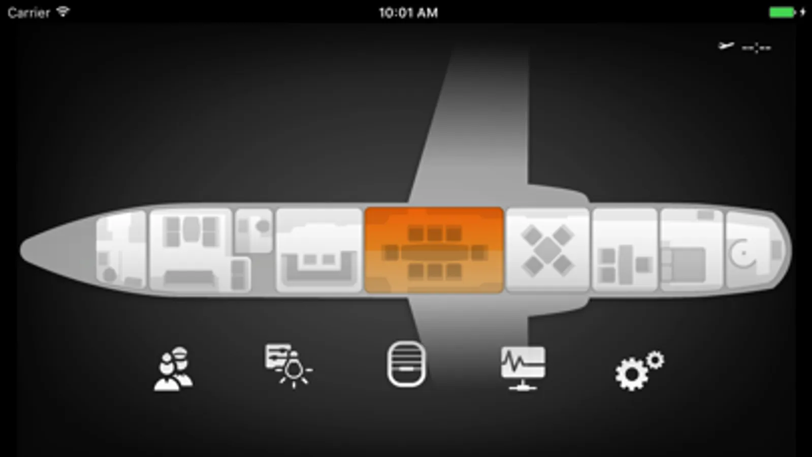 The "nice Cabin" App provides you with a very handy and intuitive remote control interface for your aircraft cabin. It lets you control all aspects of your business jet cabin environment directly from your preferred iPad / iPhone / iPod touch via the onboard Wireless LAN from your seat or wherever you are in the cabin.