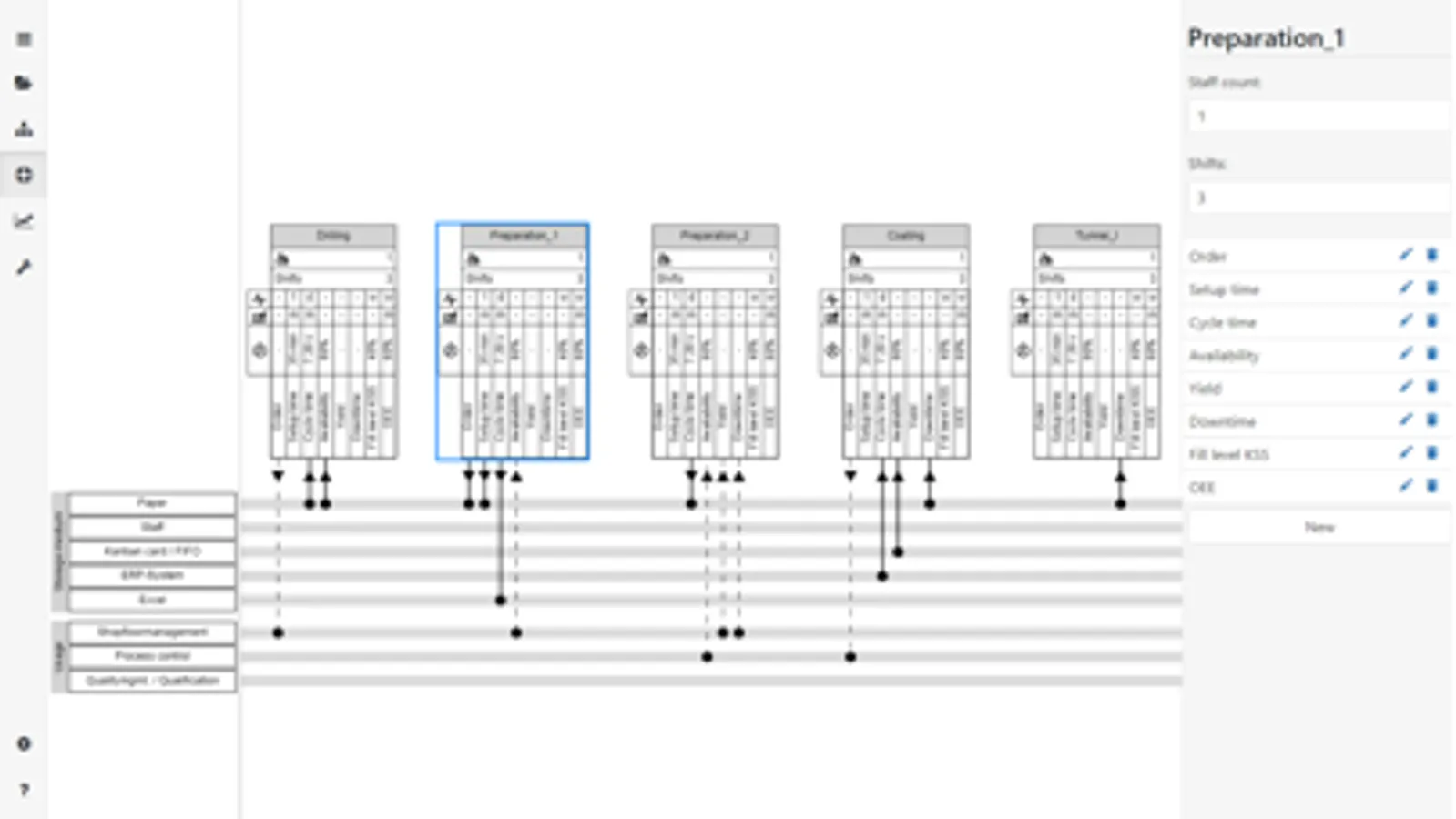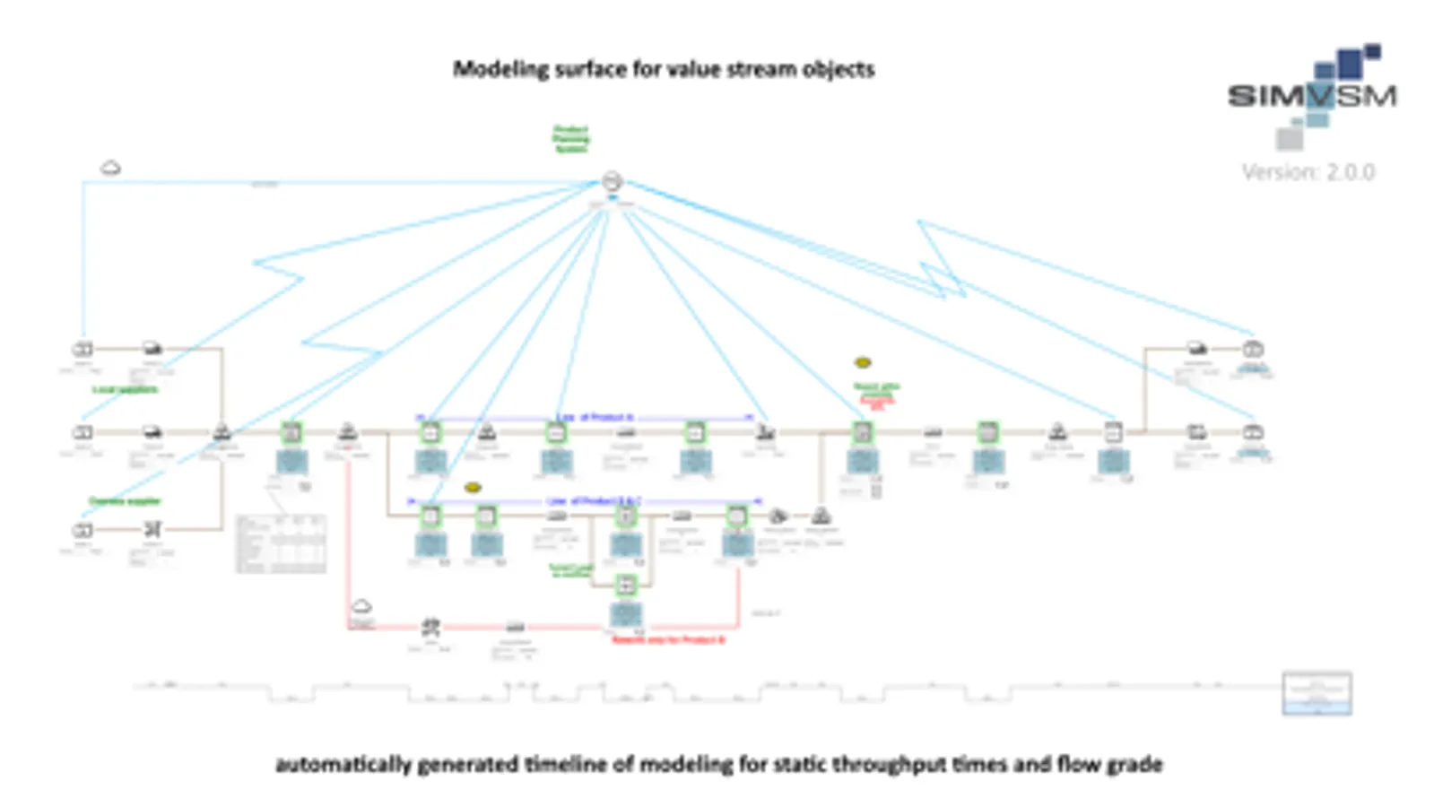 - By connecting to a value stream simulator, you also get a dynamic evaluation of the modelled value stream. This includes the development of on-time delivery, process utilization, bottleneck analysis, throughput, stock levels and lead times against the background of dynamic conditions over time.