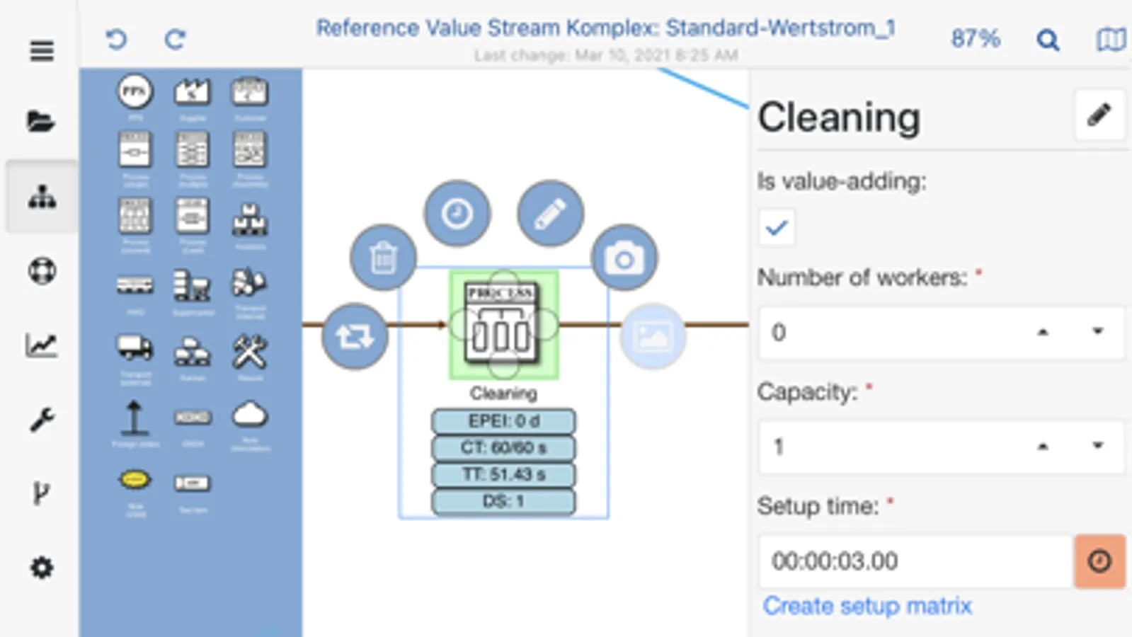 With SimVSM you can quickly record your value streams via drag & drop on a mobile device.