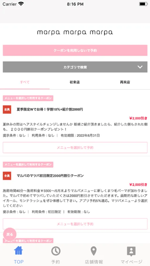 お得なクーポンが配信されます。ネット予約時にクーポン利用での予約も可能なので来店時もスムーズに施術頂けます。