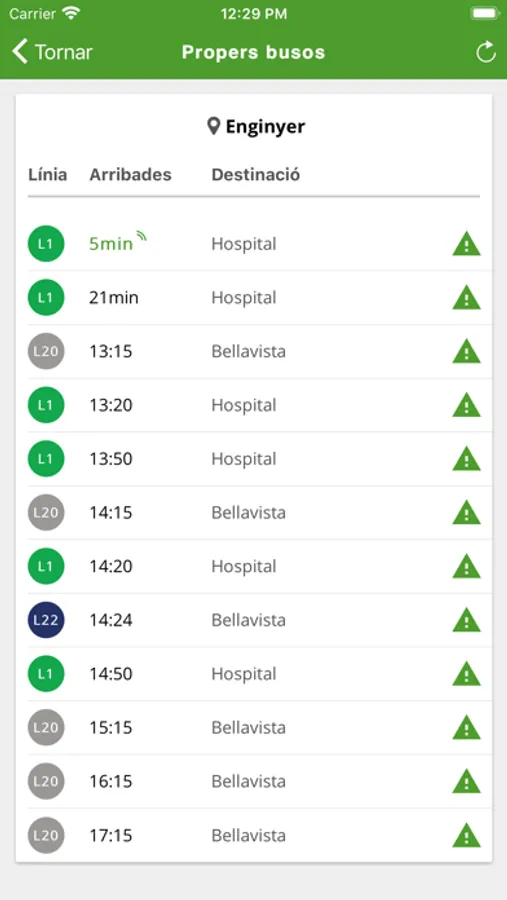 - Les meves parades: Accés directe a aquelles parades marcades com a favorites. Al clicar sobre una parada en concret et dóna el temps de pas real del següent bus i les properes sortides programades. A més permet, consultar les incidències o descarregar un pdf amb l’horari complet de la línia.