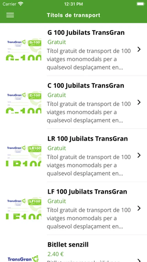 - Títols de transport: Ofereix el llistat de títols de transport vigents per al servei urbà, amb una petita descripció i el preu.
