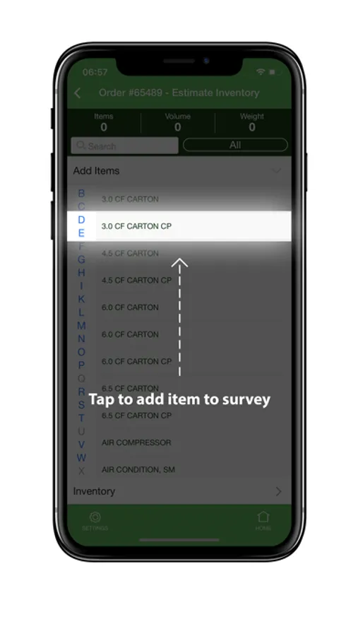 - Create custom items on the fly by adding your own details (Item Name, Weight, Volume)