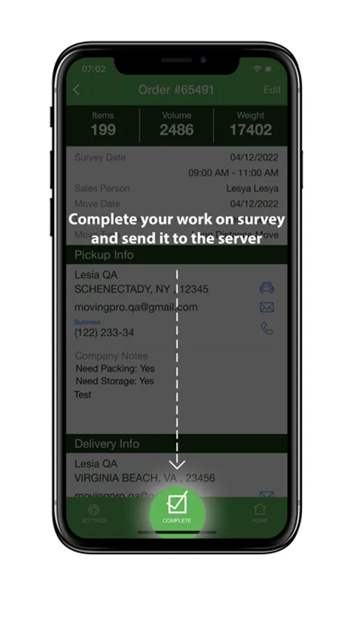 - Client E-signature tool which allows you to verify all items with the client and confirm all information between the customer, movers, and your office.