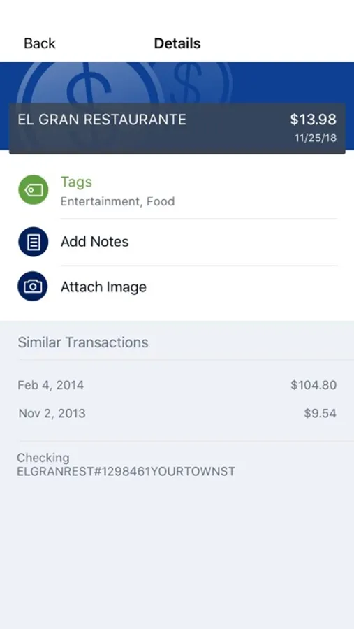 Add Tags, Notes, Images & Geo-Information: By enhancing transactions with custom tags, notes or photos of a receipt or check, you have the ability to stay organized and find exactly what you’re looking for when searching through your finances.