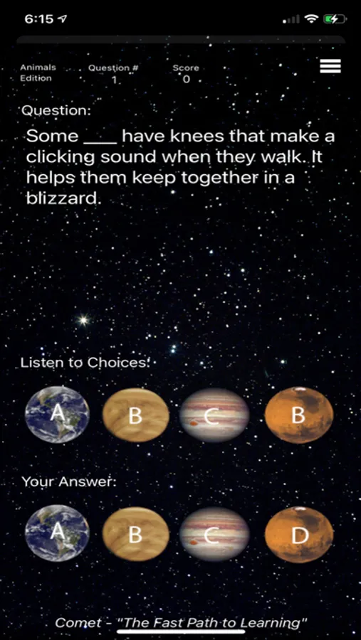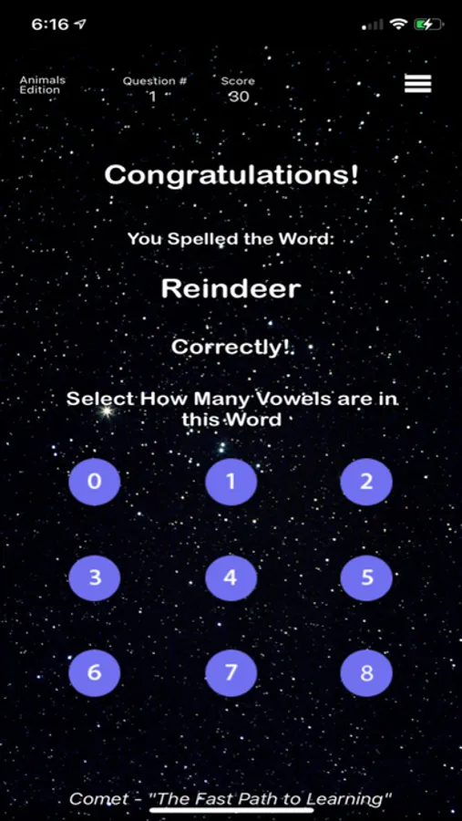 Comet The Spelling Game is the Fast Path to Learning! The Animals Edition has over 100 questions for everyone to enjoy. Gain knowledge in an entertaining way that will amaze you. Never under estimate your spelling!