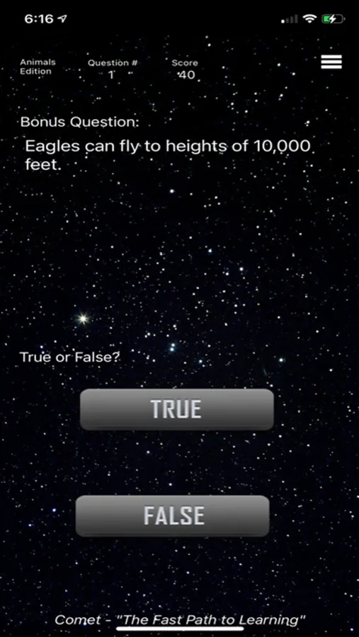 - There's more fun once you answer the Bonus Question, based on True and False questions.