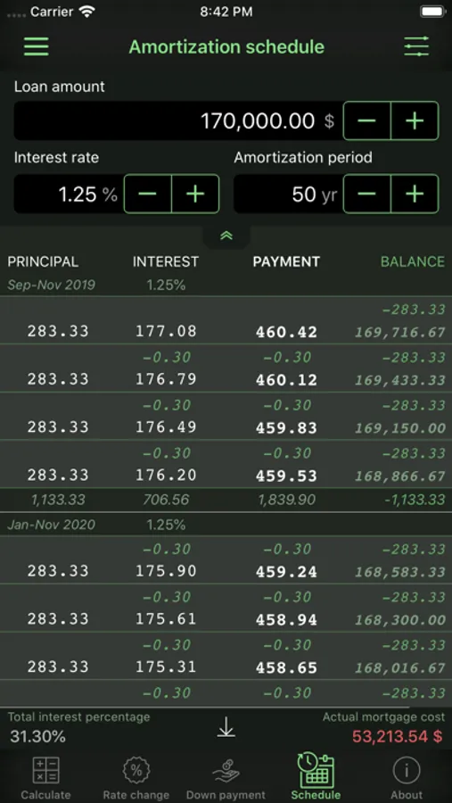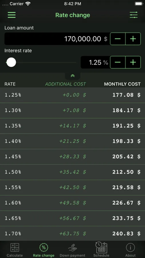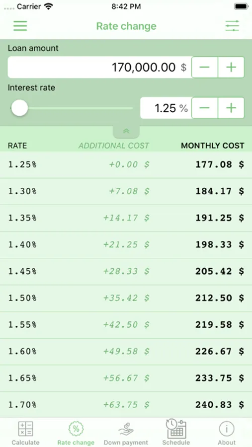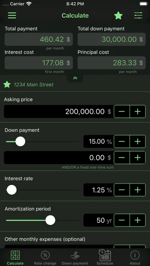 Use Home Mortgage Calculator to get a fast overview of your costs, down payment, monthly principal and interest costs and rate changes.