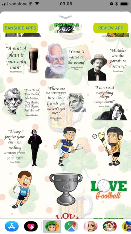 *Irishmoji Magic tm is trademark of Banshee Apps ltd. Unauthorised use, disclosure or reproduction is strictly prohibited. All Graphical assets are invisibly watermarked and protected.