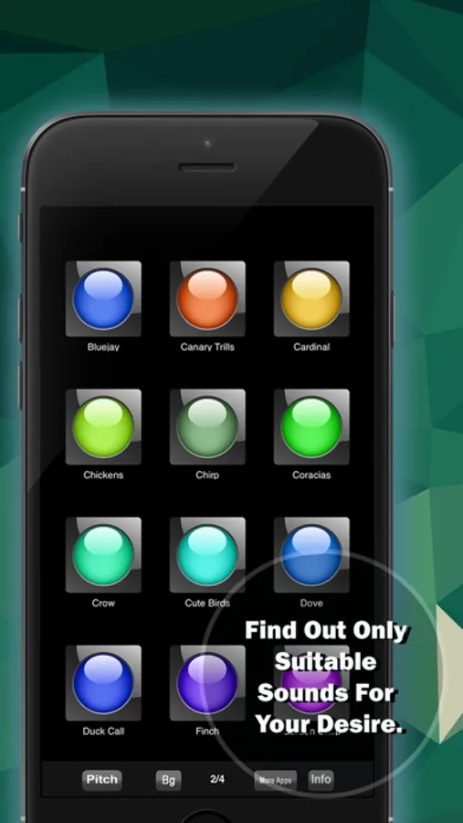 Listen HD sounds of birds like duck’s quack, eagle’s scream, hen’s cluck, owl’s hoot, parrot’s talk, pigeon’s coo, robin’s chirp, sparrow’s yelp, swallow’s twitter and many more voices at one spot with this leading gorgeous soundboard app.