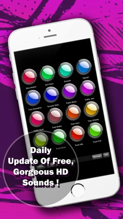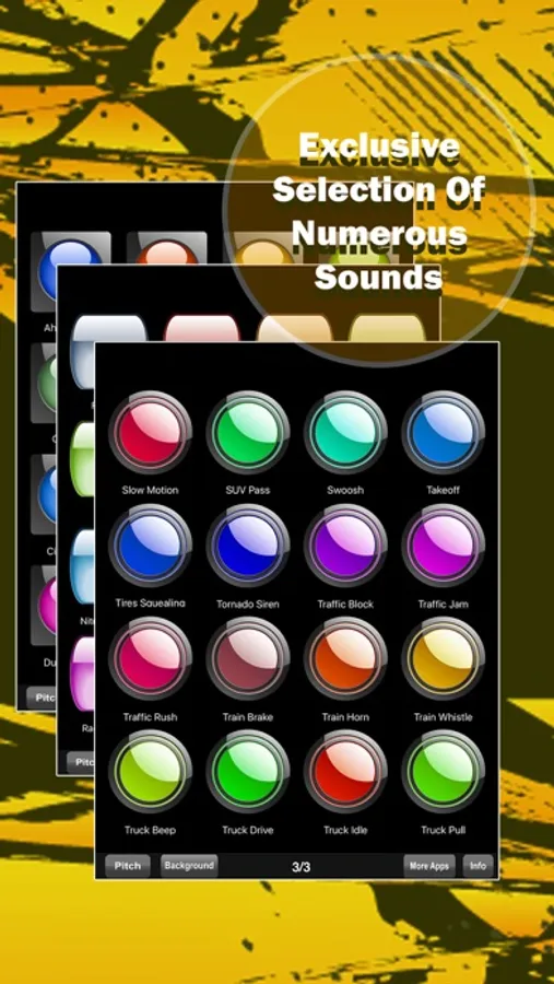 Listen HD sounds of traffic like horn sounds, race sounds, drift sounds, brake sounds, Train whistle sound, Transport vehicle’s sounds, traffic jam sounds and many more voices at one spot with this leading gorgeous soundboard app.
