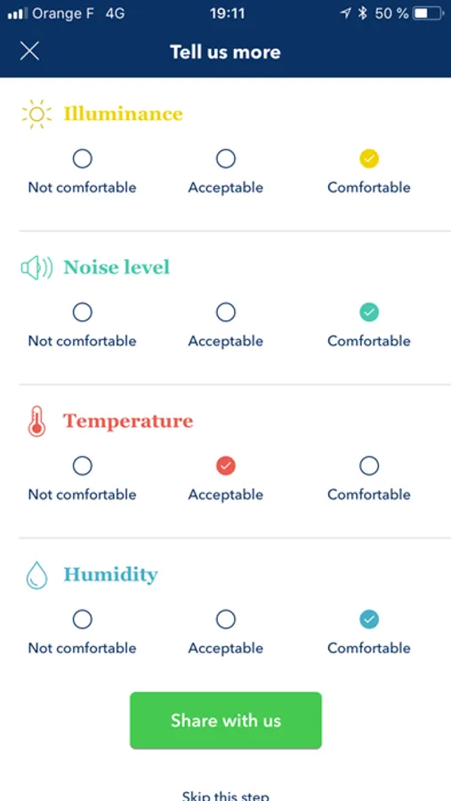 MC350 is an app with a connected device that measures in a very simple way different types of comfort: temperature, noise, illuminance and humidity. Participate in local and international campaigns to help improving comfort worldwide and build great living places.