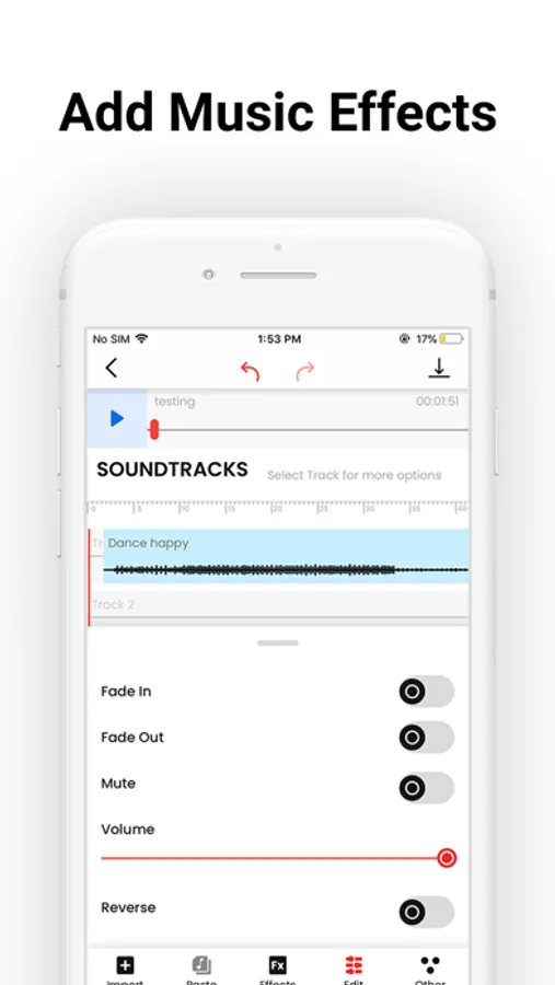 - Use our advanced editing tools to mix, cut music, toggle volume and add sound effects