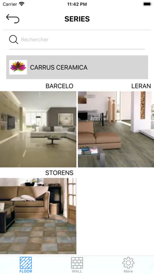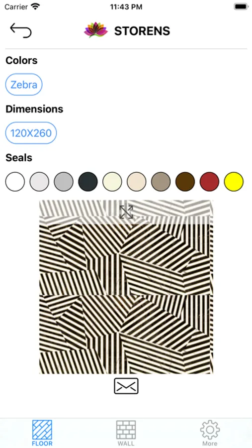 As soon as the photo of the selected material appears in the IN-CUBE App, it is instantly displayed on the floor and on the wall in its actual dimensions.