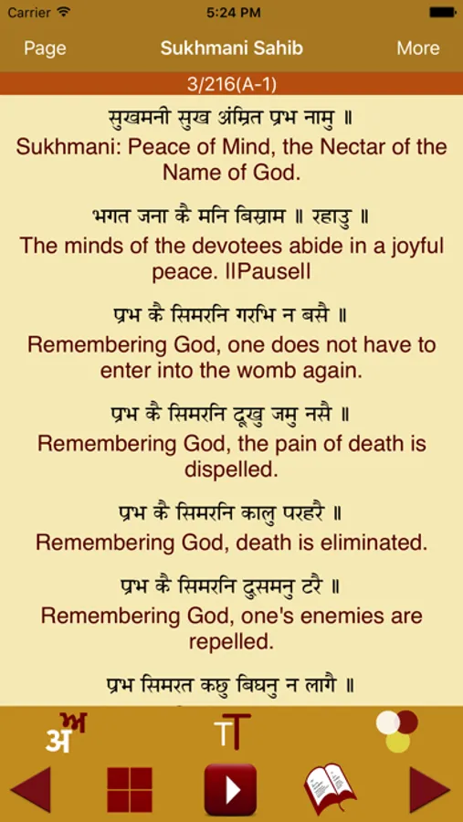 Sukhmani Sahib Audio path app let you read and listen to paath on your mobile. You can read Sukhmani Sahib Path in Hindi, in Punjabi or in English and can read meaning of path while reading or listening to 'Sukhmani Sahib Path'. Purpose of this app is to let busy and mobile young generation reconnect with Sikhism and Gurubani by reading path on mobile. We hope that you will find this app useful and and will use it daily.