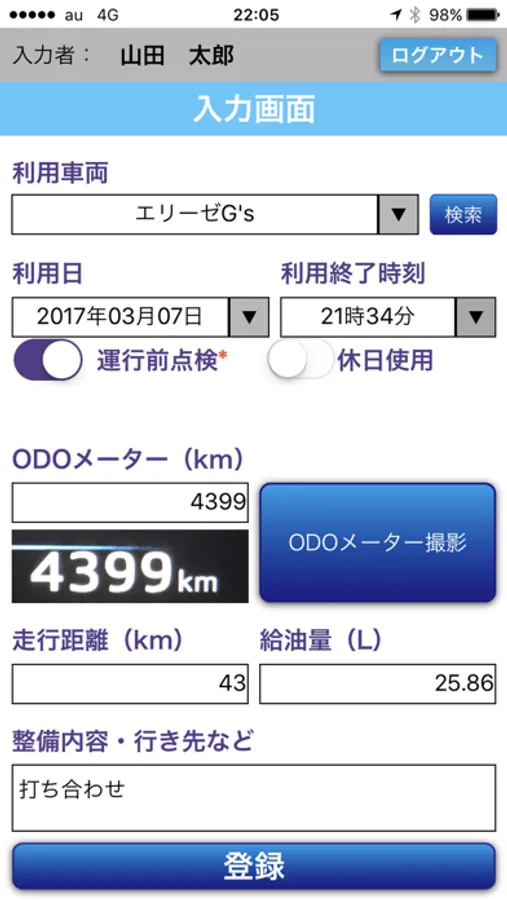 社用車の運用に必要な運転記録ですが、紙に書くのは時間が掛かります。本アプリでは、スマホでメーターを撮影するだけで走行距離が反映され、時間短縮や記入ミスを防ぐことができます。