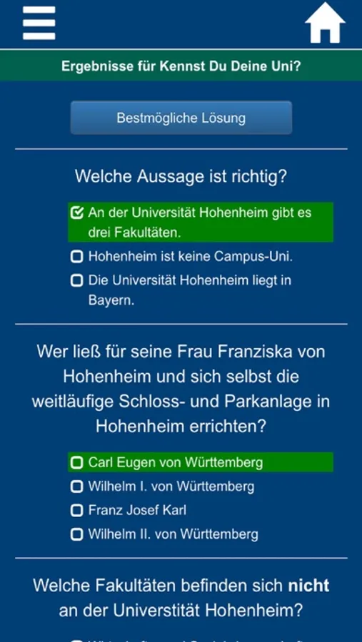 - Direkte Feedbackfunktion nach Beantworten einer Frage (optional)