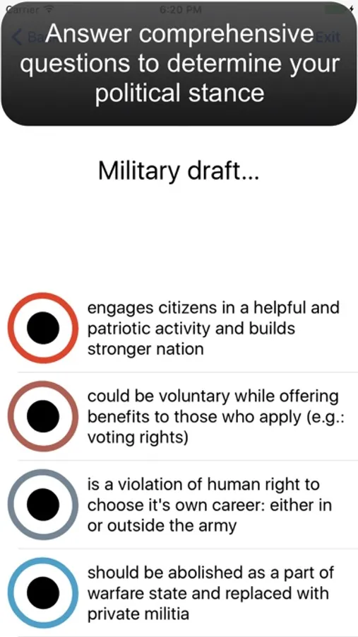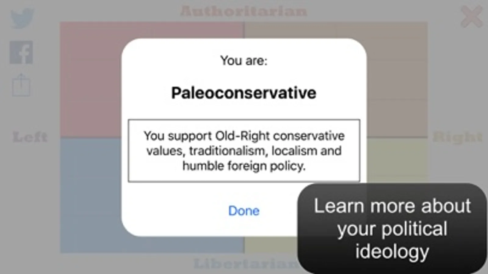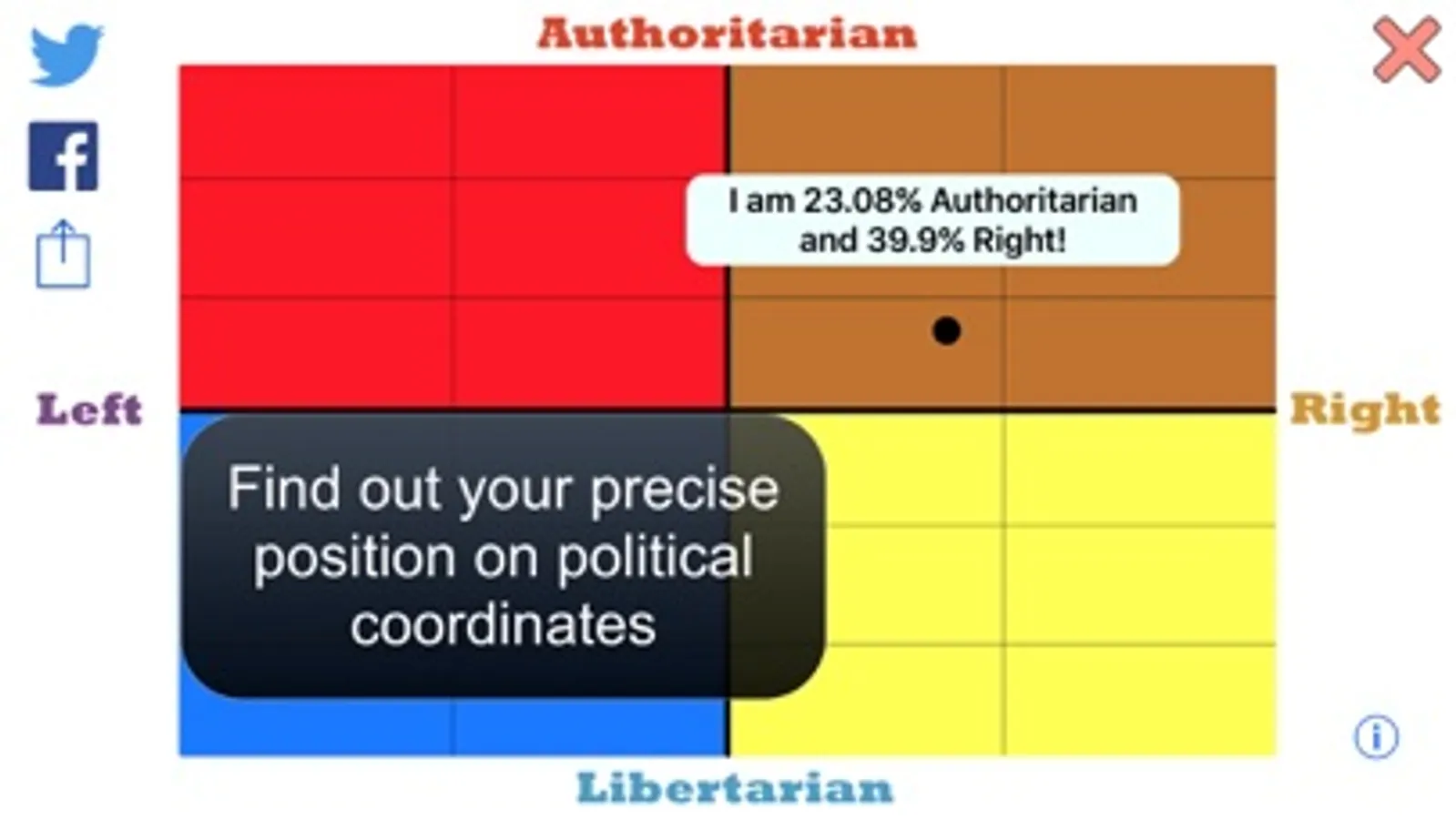 Political Coordinates app gives you an opportunity to pass a comprehensive test to discover your position on the chart.