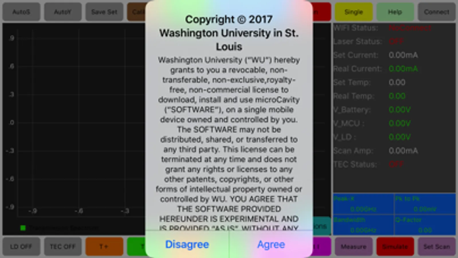 Microcavity is used to control the whispering-gallery-mode (WGM) microresonators based miniature sensing system wirelessly. As the photonic sensor of this system, WGM resonators have features of ultra-high quality (Q) factors and small mode volumes, which have found broad applications in photonics, such as cavity quantum electrodynamics, optomechanics, bio/chemical sensors , nonlinear optics, microlasers and non-Hermitian optics. In order to explore the potential applications in Internet of things for WGM resonators, a wireless WGM sensing system is developed, which not only integrates bulky equipment into a phone-sized embedded system, but also achieves the functionality of remote control by iPhone. This app enables you to view live transmission spectrum of WGM sensor, make measurements, and capture instruments screenshots from your iPhone.