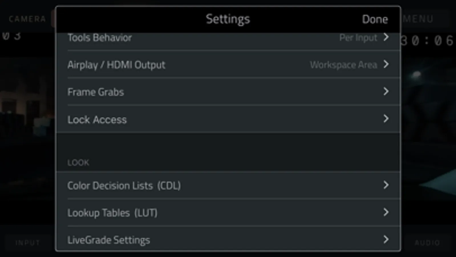 FALSE COLOR– Select a Full-range IRE Guide or a Discrete guide (similar to ARRI or RED camera false color guides), enable IRE Guide overlay for reference on-screen