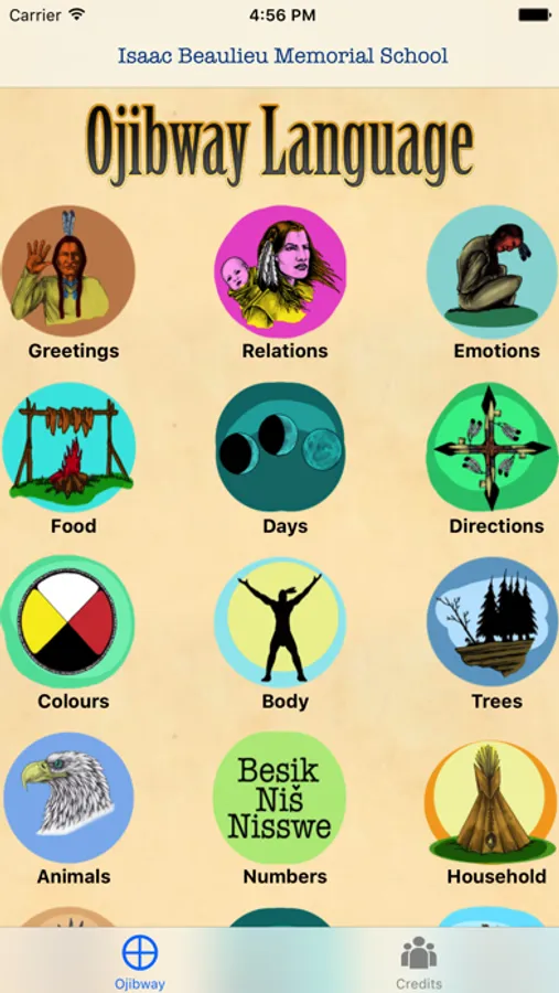 This Ojibway Language App was created by the Sandy Bay Ojibway First Nation in Manitoba Canada and features Ojibway speakers from the Isaac Beauleau Memorial School on the Sandy Bay First Nation.