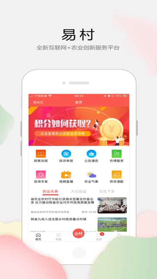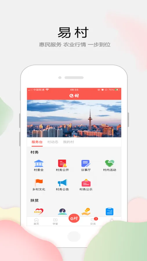 “易村——智慧乡村公众服务平台”是围绕协同高效化、治理精细化、数据可视化,为各级政府和村民提供智慧化服务的乡村公众平台。