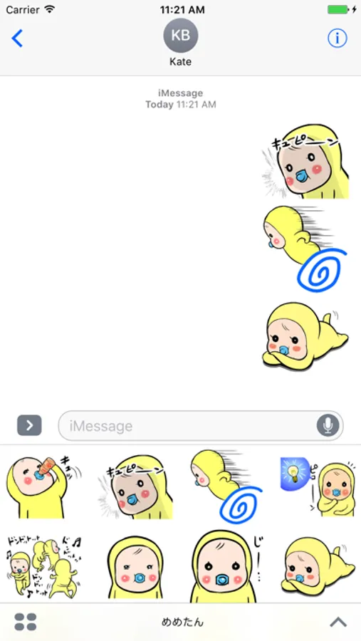 「めめたん」のスタンプです。黄色いロンパースが世界一似合う刑事、めめたん。いざという時に役に立つものばかりを取り揃えました!