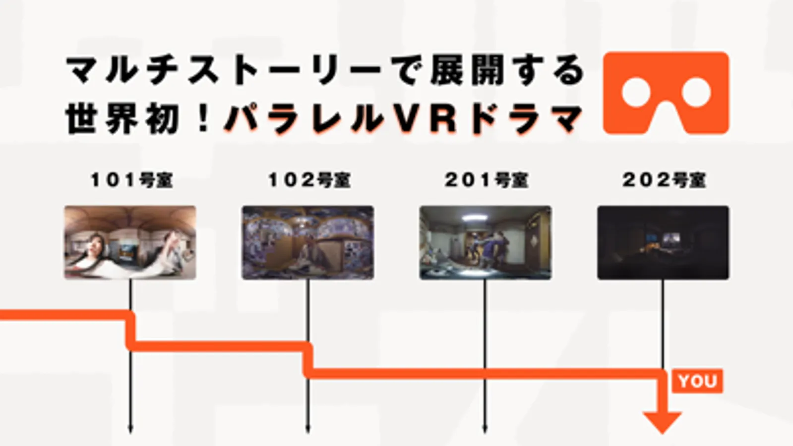 ストーリーは、古いアパートの一室で起こった密室殺人事件。犯人はこのアパートの中にいる! それぞれの登場人物の部屋を移動して犯人を探し回る、マルチストーリー本格VRドラマ。犯人は、360度バーチャルリアリティの迷宮に逃げ込んだ! 果たして誰なのか? 犯人がわかっても決して人には言わないでください (SNSも含む)!