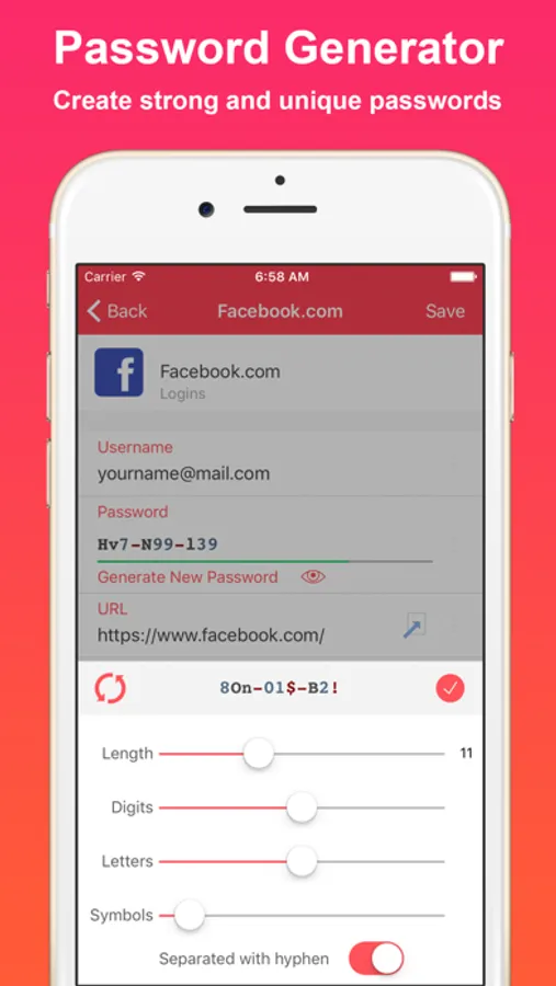 - Built-in password generator lets you create strong and unique passwords for logins.