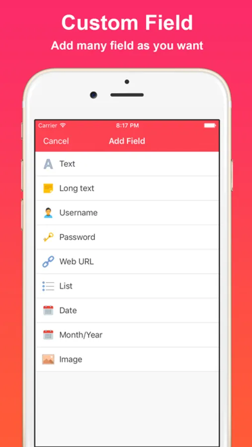 - Support custom fields to store security questions, extra URLs, and any other information you can think of