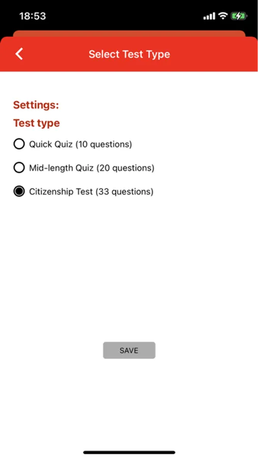 - A full test with 33 questions, as in the official naturalisation test, 17 of which must be answered correctly in order to pass the test.