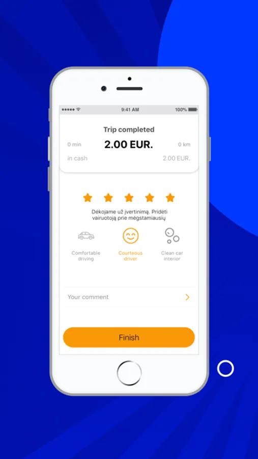 · Jūs matote informaciją apie automobilio markę, numerį ir taksi atvykimo laiką. Po užsakymo įvykdymo galite matyti sumą ir nuvažiuotą atstumą.